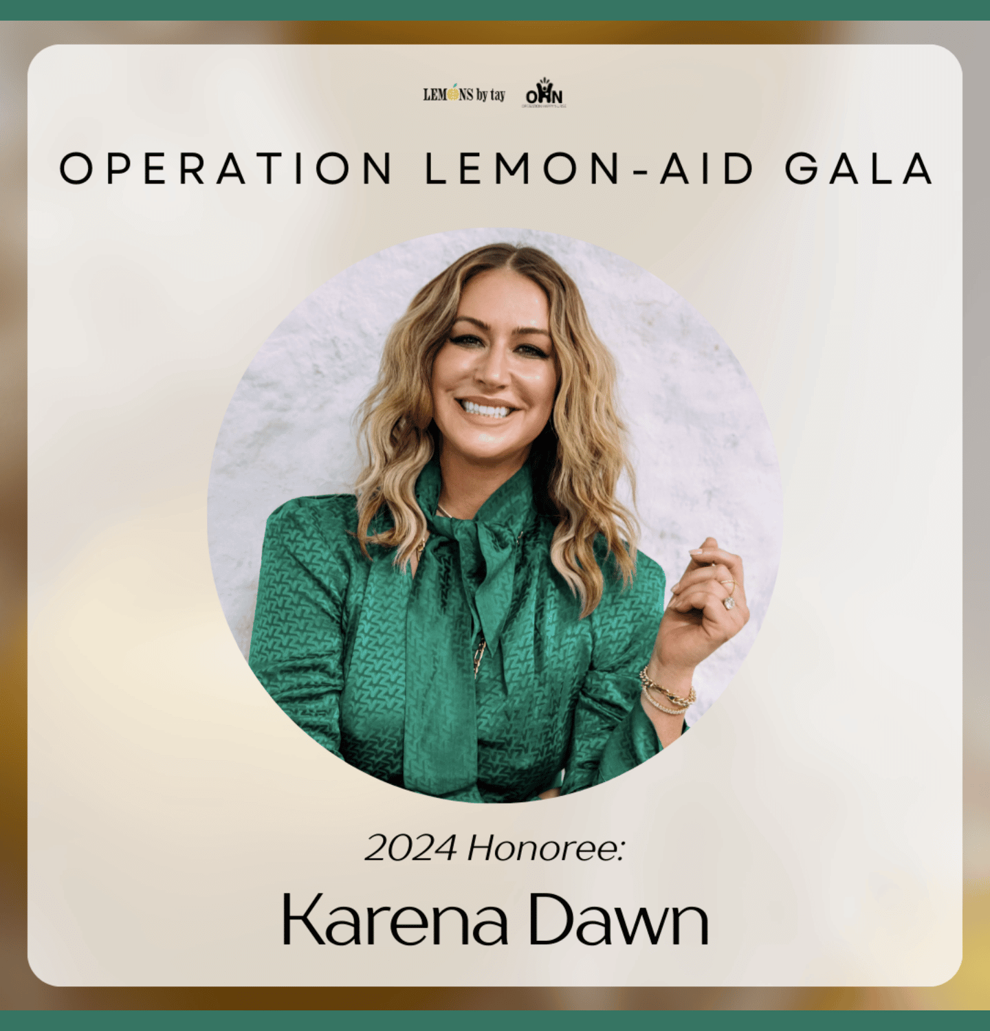 We are so honored to announce Karena Dawn is an Operation Lemon-Aid mental health movement honoree! The Operation Lemon-Aid Gala celebrates those making a difference in the world of mental health, all while contributing to two great causes. Hosted by Tay Lautner, founder of Lemons by Tay, and Shannon McPeek, founder of Operation Happy Nurse. These two nurses are extremely passionate about mental health and together are aiming to #endthestigma.