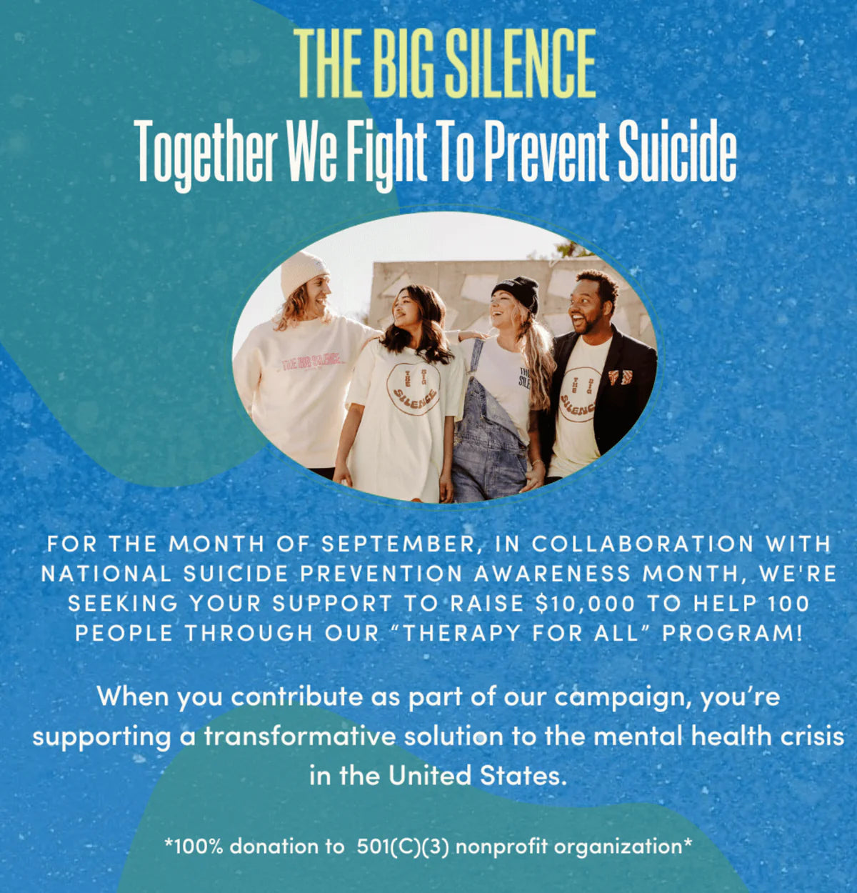 It's our goal to raise $30,000 to help increase access to mental health resources and support, including therapy, and especially for those in mental health deserts.